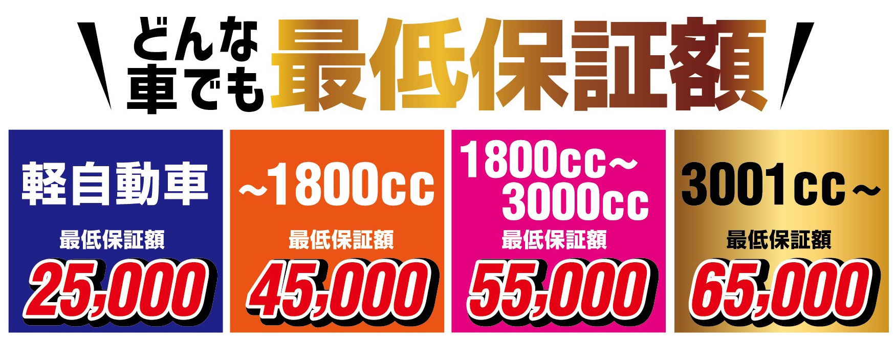 どんな車も最低保証額あり